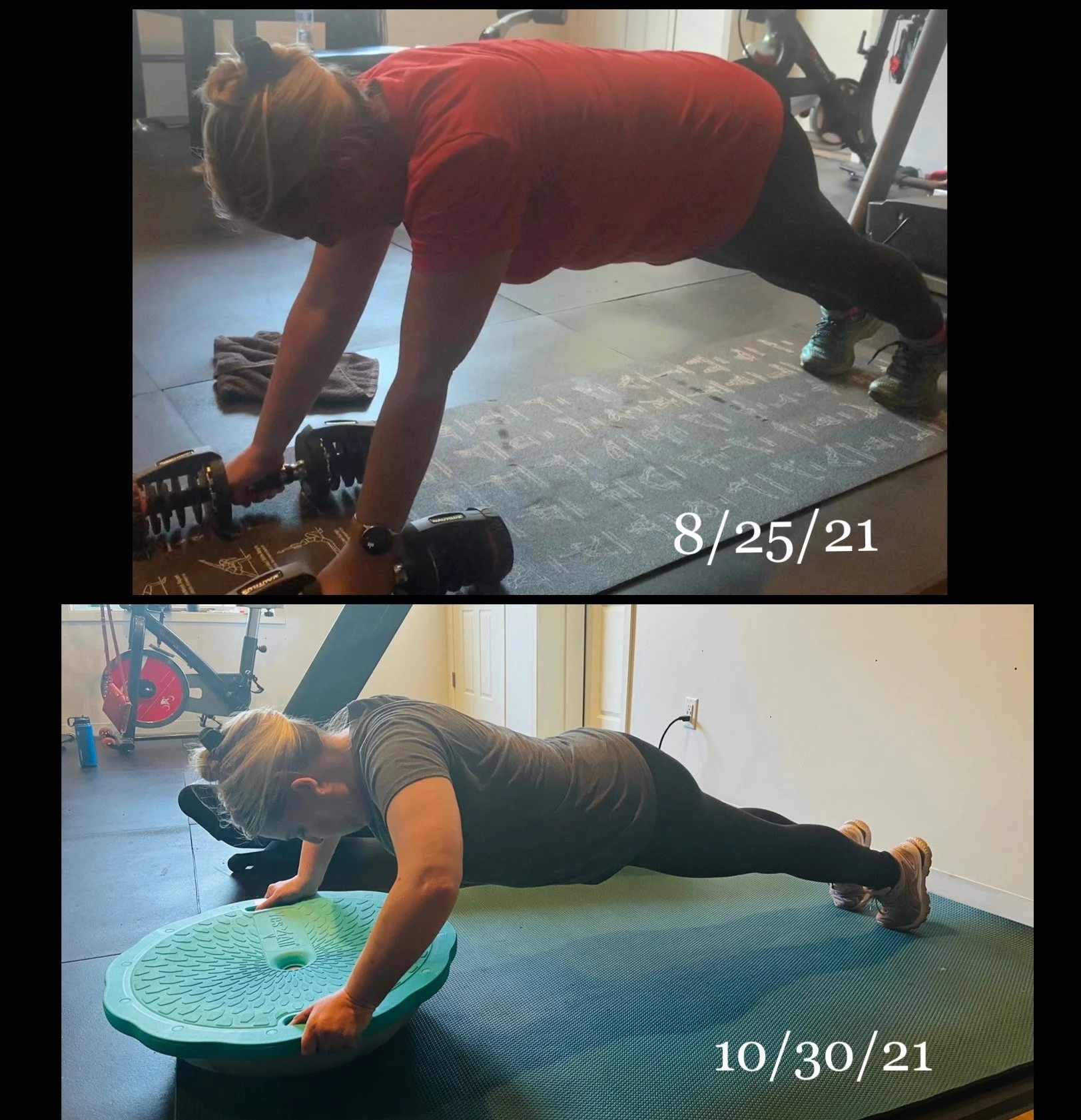 This client worked my Behavior Assessment program for 7 weeks which includes a weekly workout plan and provides active accountability throughout the week, switching to Personal Training x2 per week. She started with me in July, and I have been incredibly proud of her progress. She has embraced strength training and continues to improve her strength and cut body fat!